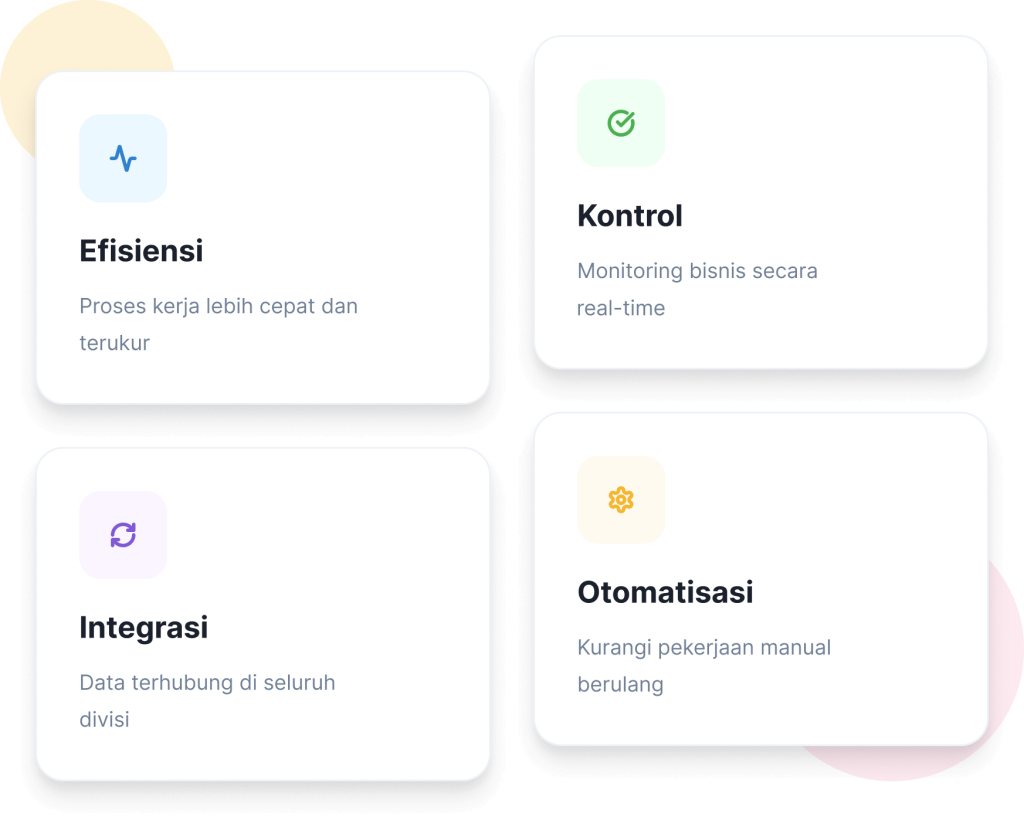 Banyak perusahaan telah memiliki sistem operasional yang berjalan dengan baik. Namun dengan pendekatan teknologi yang tepat, sistem tersebut dapat menjadi lebih efisien, lebih terintegrasi, dan lebih mudah dikontrol.